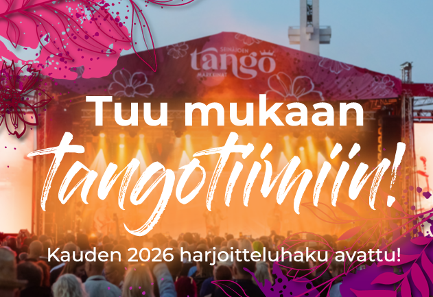 Kauden 2026 harjoitteluhaku avattu! Etsimme tapahtuma-alasta innostuneita opiskelijoita vahvistamaan tangotiimiämme festivaalikaudelle 2026. Seinäjoen Tangomarkkinat tarjoaa vuosittain innostavan ja kannustavan ympäristön tapahtumakentän saloihin tutustumiseen. Tarjoamme tapahtumakaudelle ...