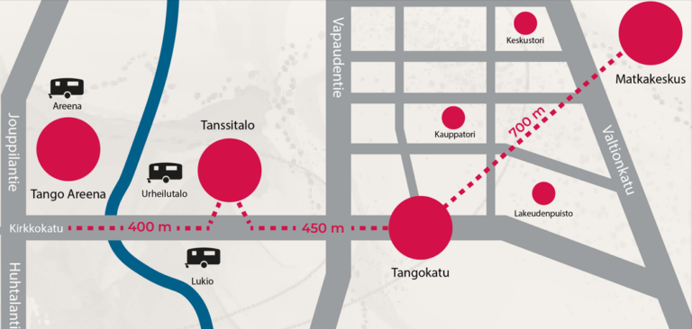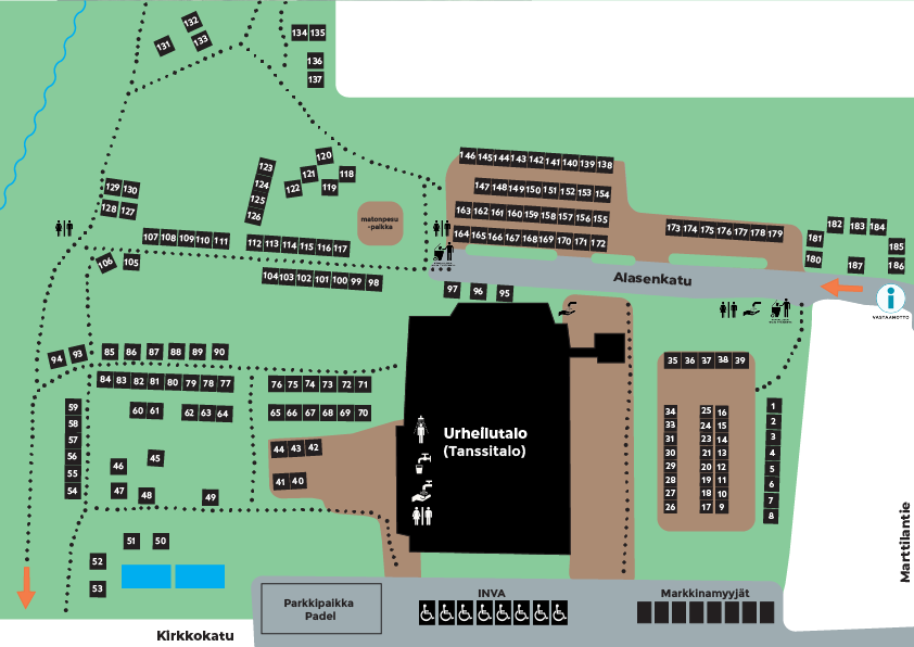 Seinäjoen Tangomarkkinat tarjoaa majoitusta kolmella eri leirintäalueella; Lukio, Urheilutalo sekä Areena.